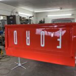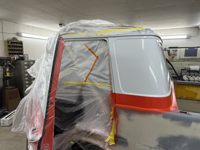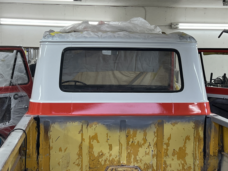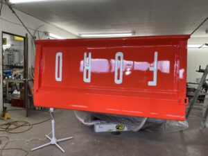 The tail gate was completed by first painting the orange on the complete panel and then masking off the letters to be painted white.  Then the clear was applied.