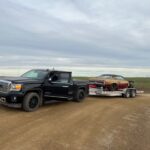 The brakes on this car were seized from sitting and two tires were rotted off so I began by putting some spare rims and tires on to drag this car up onto the trailer. Note: if you are wanting to purchase an electric winch, get a heavy duty version with lots of power and a thick cable. Very few of the vehicles I have saved will roll easily onto the trailer.